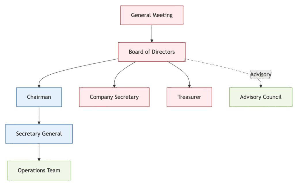 Our association adopts a clear and efficient governance framework to ensure smooth operations, combining democratic decision-making with professional execution.
